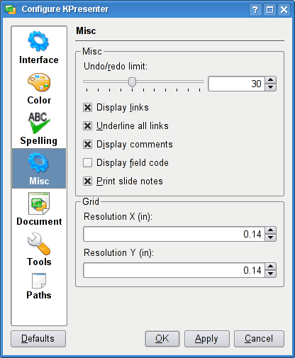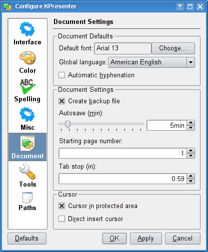 Configure KPresenter