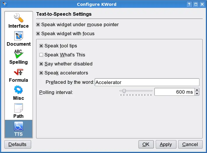 component called KTTS. If KTTS is installed, you can configure KWord to