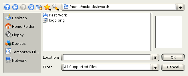 KWord can use pictures already stored in a file or acquire an image from a scanner.