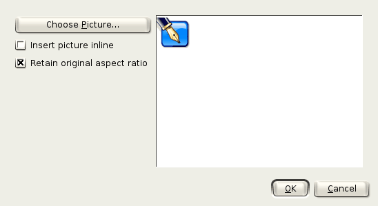 picture frame is correct, release the left mouse button. KWord will insert the picture into the frame, and resize the picture to fit within the
