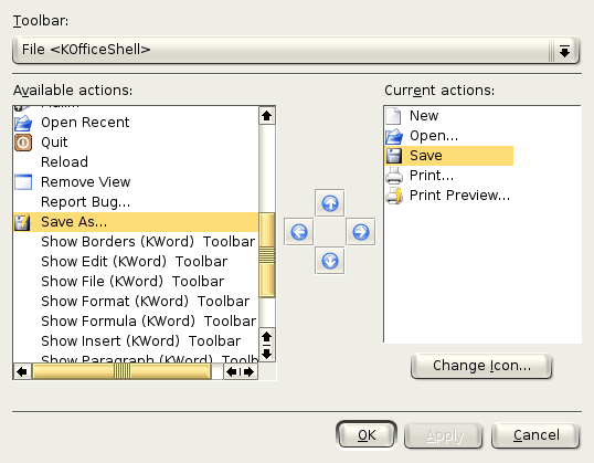 To configure KWord's toolbars