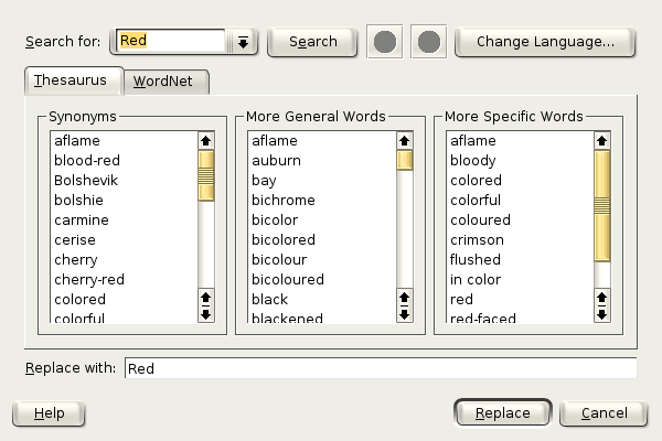 KWord comes with a small thesaurus based on the Wordnet project. For more information on Wordnet, visit the