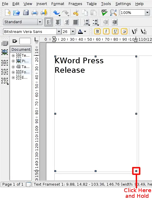 right corner of the frame. Click with the left mouse button and hold it