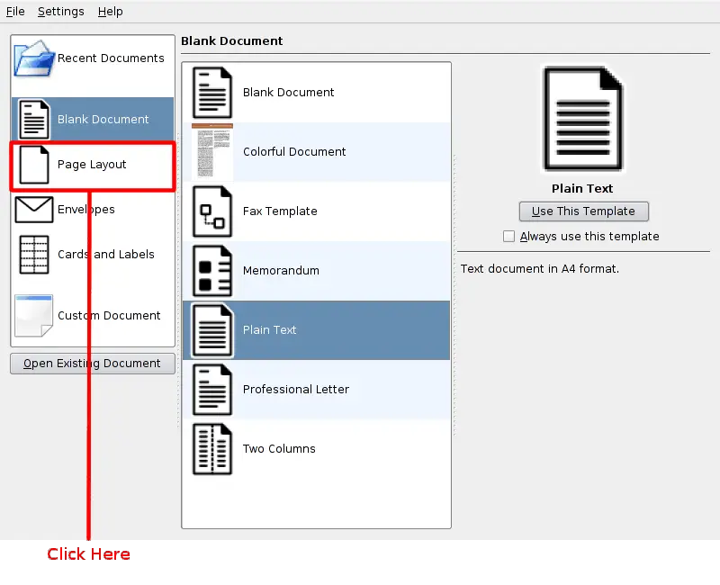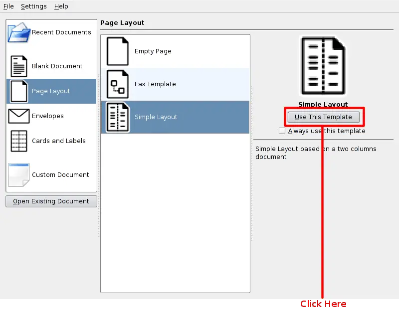 document after KWord is running), KWord asks for a document template.