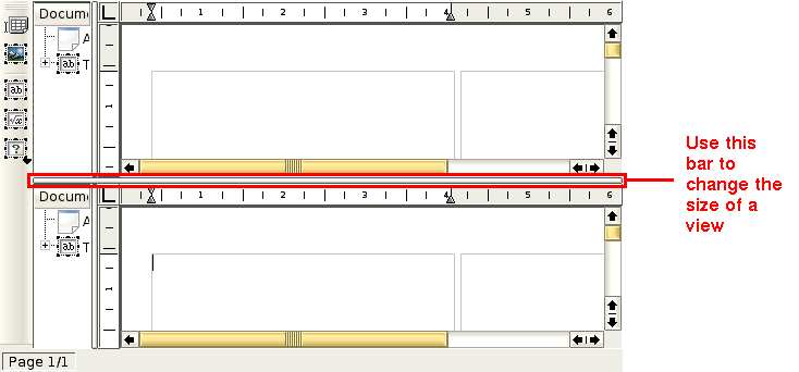 solid border which appears raised between the scrollbar and the ruler. As the mouse pointer passes