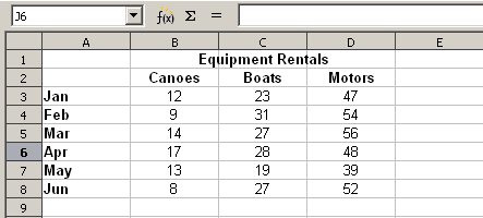 To demonstrate the process of making charts and graphs in Calc, we will use the small table of data below.