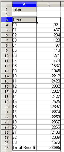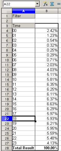 - Click OK. As an intermediate result you get a DataPilot table that has for every time within the raw data a separate line.
