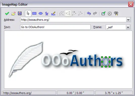 The dialog to create image maps. The last "o" is set as an active hotspot.