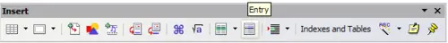 | You can also open the Insert Index Entry dialog box by clicking the Entry icon on the Insert toolbar, as shown below.