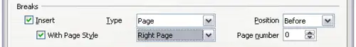 - On the Text Flow page of the Paragraph Style dialog box, in the Breaks section, select Insert, With Page Style, and Right Page. Click OK to save your changes.