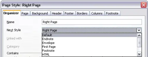 - On the Organizer page of the Page Style: Right Page dialog box, change Next Style to Default.