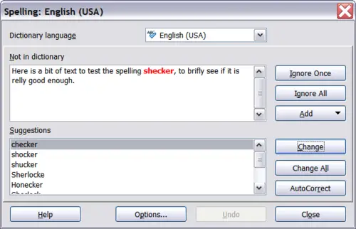 - You can change the dictionary language (for example, to Spanish, French or German) on the Spelling dialog box.
