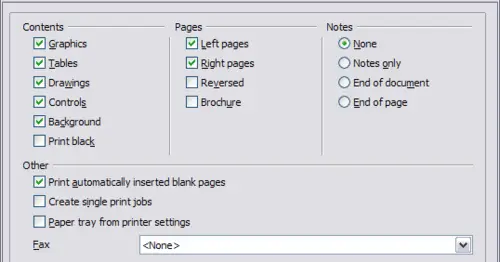 On the OpenOffice.org Writer – Print page, you can choose which items are printed with the document by default. These options are in addition to those on the OpenOffice.org – Print page.