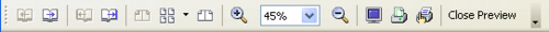 . The Writer window changes to display the current page and the following page, and shows the Page Preview toolbar in place of the Formatting toolbar.
