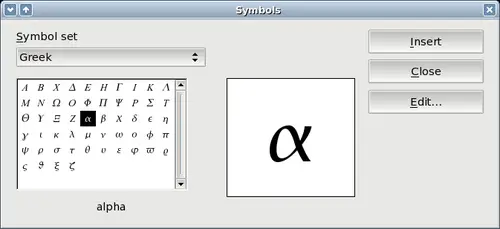 Greek characters (α, β, γ, θ, etc.) are common in mathematical formulas. These characters are not available in the selection box or the right-click menu. Fortunately, the markup for Greek characters is simple: Type a % sign followed the name of the character, in English.
