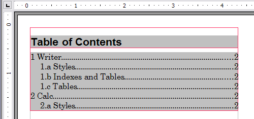 To stop the table of contents being changed accidentally, select the Protected against manual changes option. If this option is selected, the table of contents can only be changed using the context menu or the Insert Table/Index dialog box. If the option is not selected, the table of contents can be changed directly on the document page, just like other text.