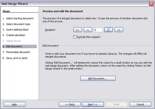 You can also edit the body of the document. If you started with a blank document, you can write the whole letter in this step. Click Edit Document to shrink the wizard to a small window so you can easily edit the letter.