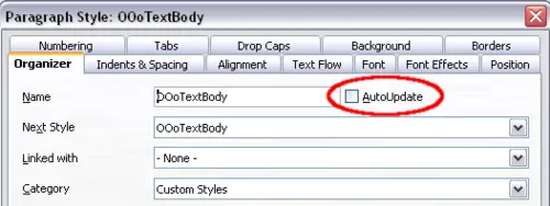 | If you are in the habit of manually overriding styles in your document, be sure that AutoUpdate is not enabled, or you will suddenly find whole sections of your document reformatting unexpectedly.