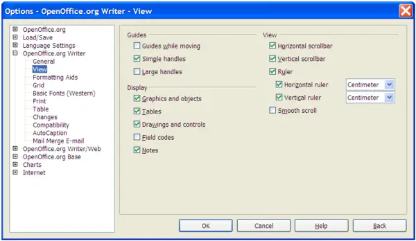 To show or hide rulers, choose View > Ruler. To enable the vertical ruler, choose Tools > Options > OpenOffice.org Writer > View and select Vertical ruler.