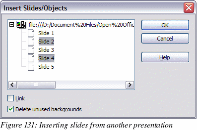 the Insert Slides/Objects dialog (Figure 131), click the plus sign