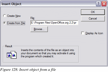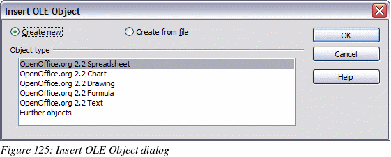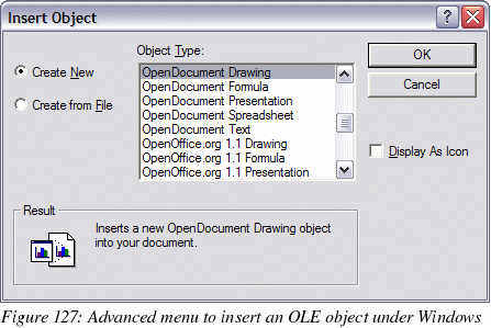 Windows, the Insert OLE Object dialog has an extra entry, Further