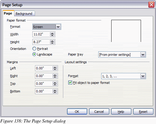 Page Setup dialog (Figure 138) is used for several purposes, some of