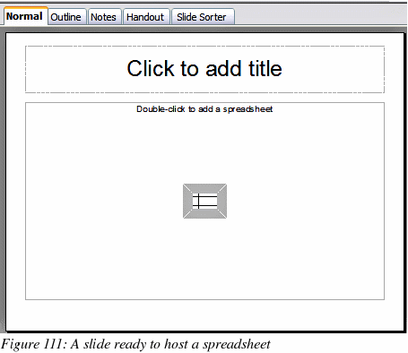This inserts a placeholder for a spreadsheet in the center of a
