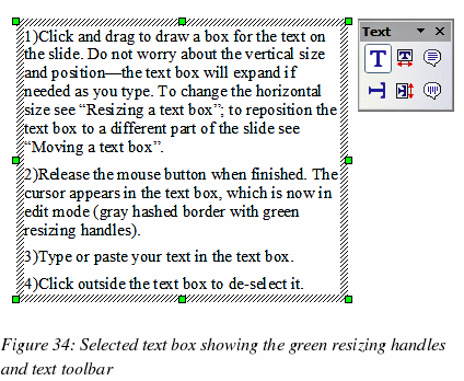resizing handles of the text box.