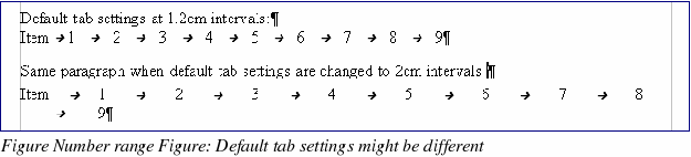 If you use the default tab interval and then send the document to someone else who has chosen a different default tab interval, tabbed material will change to use the other person’s tab settings. This may cause a major formatting problem, as shown in Figure 203.