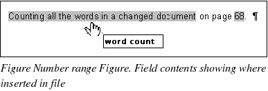 Click Insert, type any text you want to appear between the reference and page number (such as “on pageâ€), and then insert another reference with the Page format. Nothing will appear in the subdocument except tiny gray bars indicating the fields. If you hover the mouse pointer over one of these fields, you should see the field name (Figure 351).