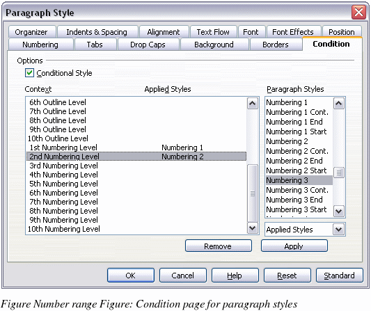 To set up a conditional paragraph style: