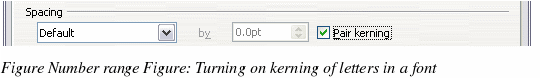 Kerning means increasing or decreasing the amount of space between pairs of letters to improve the overall appearance of the text. Kerning automatically adjusts the character spacing for specific letter combinations (see Figure 210). It is only available for certain font types and, for printed documents, only works if your printer supports it.