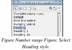 As an example, suppose you want to change the font of not only Heading 1, or Heading 2, but all headings.The easiest way to do that is to take advantage of this linking. Open the Styles and Formatting window (press F11) and select Heading(see Figure 162).