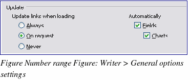 The default behavior, whenever you open a document that contains links, is for Writer to prompt you to update the links. To have Writer update links without prompting you or to turn off automatic updating, follow these steps: