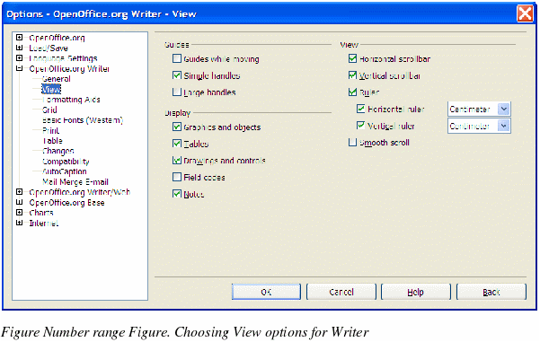 Choose OpenOffice.org Writer > View on the Options dialog box (Figure 32).