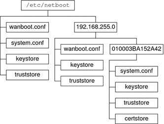 Note - The certstore file must be located in the client ID directory. See Customizing the Scope of the WAN Boot Installation for more information about subdirectories of the /etc/netboot directory.