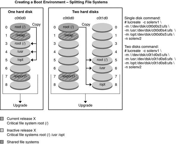 Figure 2-3 Creating an Inactive Boot Environment – Splitting File Systems
