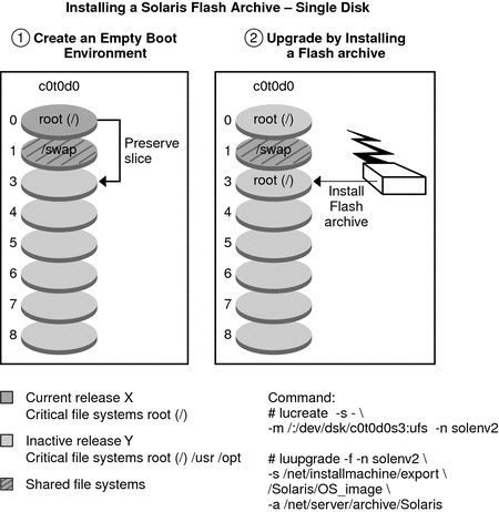 For procedures about installing a Solaris Flash archive, see Installing Solaris Flash Archives on a Boot Environment.