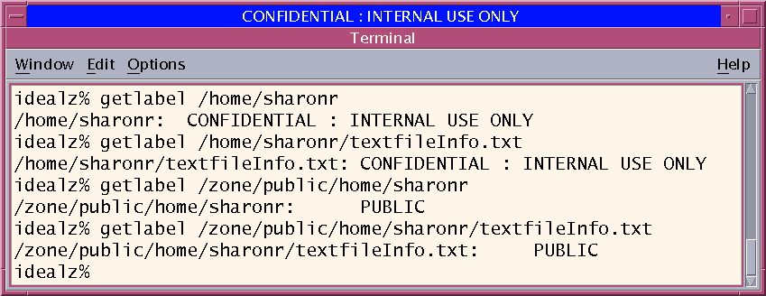 multilevel Trusted Extensions session on a system that is configured to display labels.