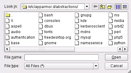Section 2.1, Breaking a Novell AppArmor Profile into Its Parts for