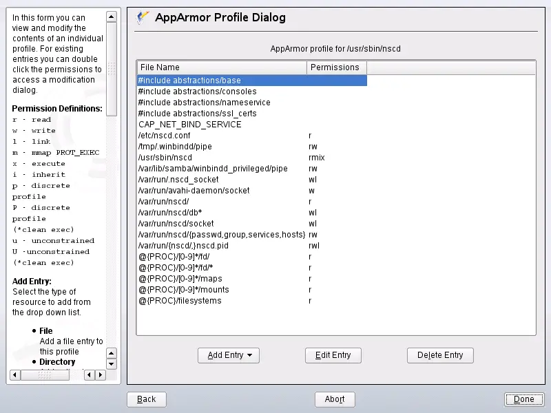 add, edit, or delete Novell AppArmor profile entries by