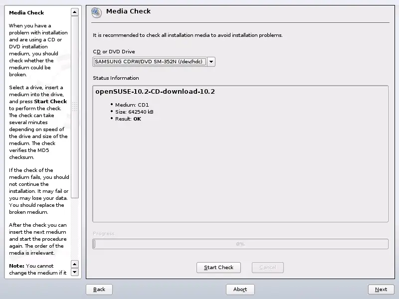 If the media check fails, your medium is damaged. Do not continue the