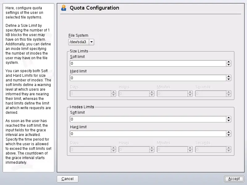 limit specified for size or inodes. Otherwise the time-related input fields are not activated.