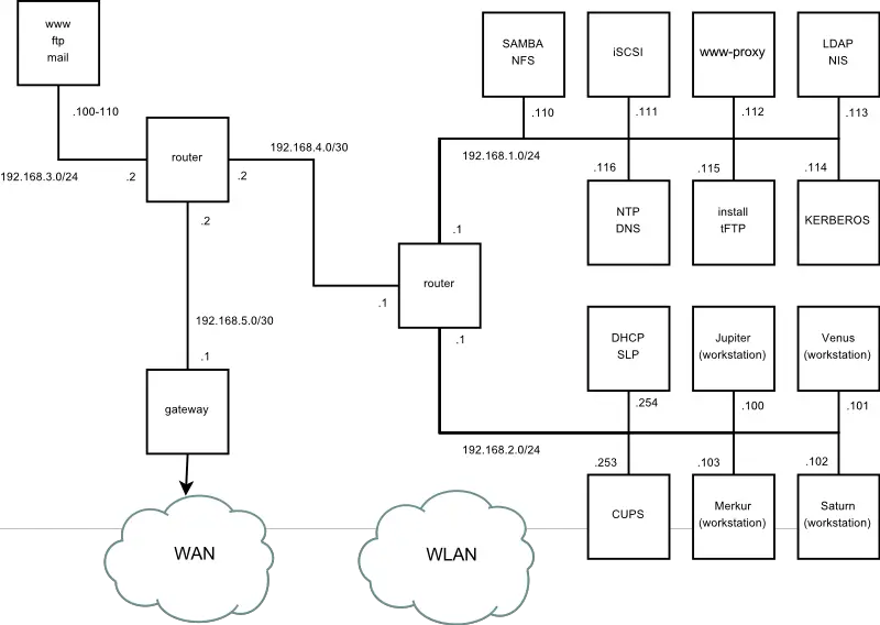 This example network is used across all network-related chapters of the openSUSE® documentation.