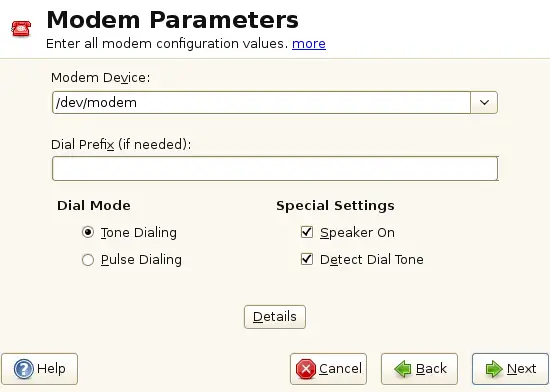In the first DSL configuration dialog (see