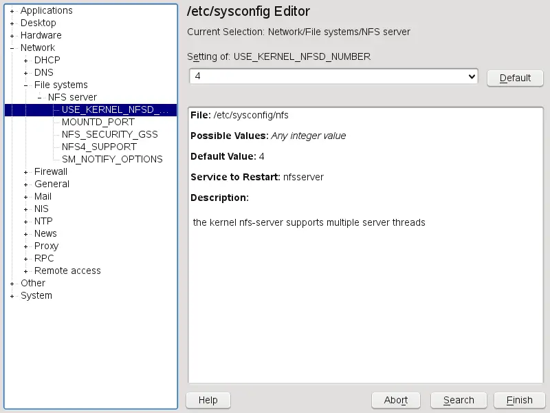 14.3.1 Changing the System Configuration Using the YaST sysconfig Editor