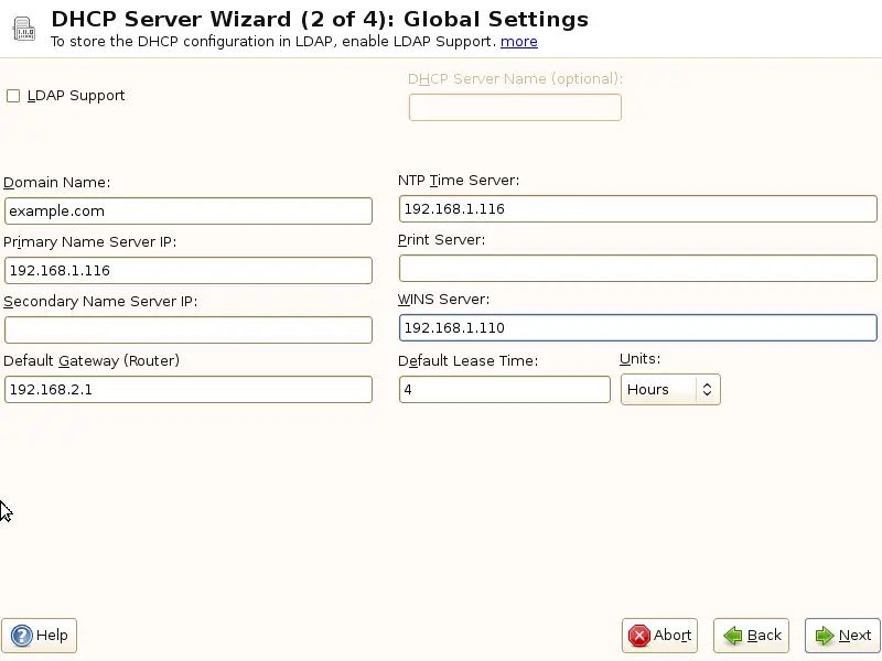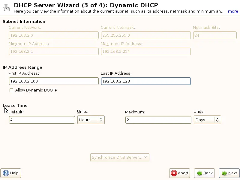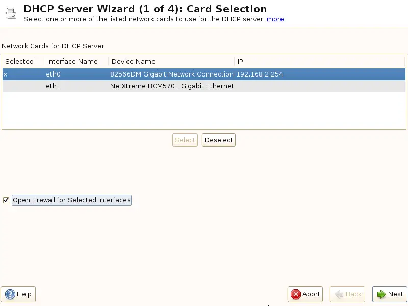 The YaST DHCP module allows you to set up your own DHCP server for the
