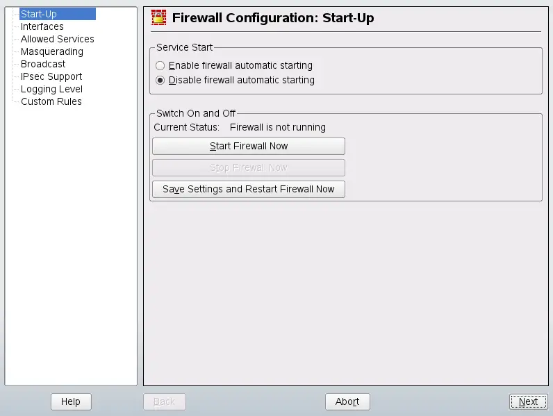 Section 33.4.1, Configuring the Firewall with YaST). It can also be made manually in