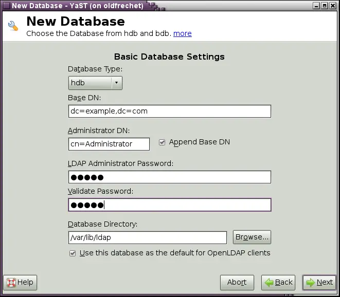 Use YaST to set up an LDAP server. Typical use cases for LDAP servers