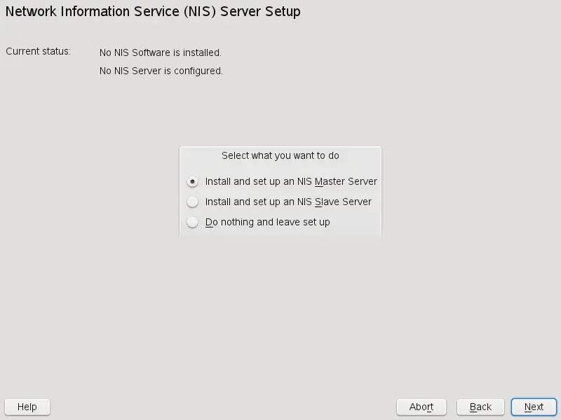 Determine basic NIS setup options: